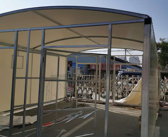 由于疫情原因很多地方的出入口都设置了体温监测,以保证健康安全的问题,像个大商场室内场所都会在进口的地方有专门的保安驻守,帮助测量体温,但是室外该怎么办呢,特别是在夏天的时候,烈日炎炎,难免会有一些人会出现身体不适,中暑的情况,这个时候我们的膜结构蓬房就起到了很大的作用。