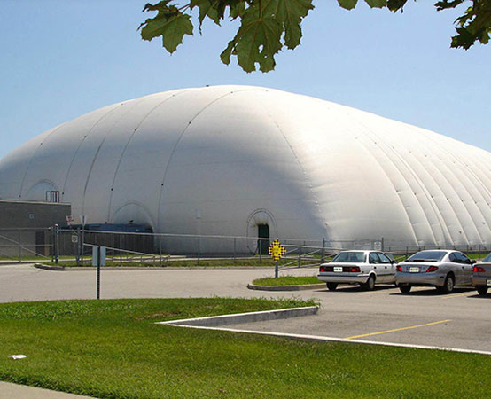 气膜体育馆是以特制建筑膜材为建筑外壳,配备全自动智能机电设备,由内外压力差支撑建筑主体的建筑结构系统。由于气膜体育馆建筑具有良好的密闭性,室外阴霾不能进入气膜体育馆的室内空间,但很多人会怀疑如何在密闭的条件下保证气膜体育馆的内部空气流通