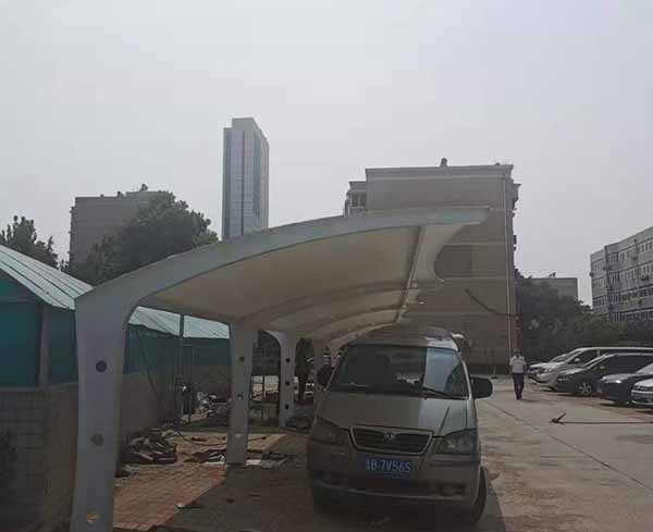 4.重量轻。膜结构停车棚的采光屋顶比传统玻璃、铝板等建筑采光屋顶轻一个或几个数量级,单位面积膜结构的自重不会随着规模和跨度的增加而显著增加。抗震性能好,耐候性好,使用寿命长。